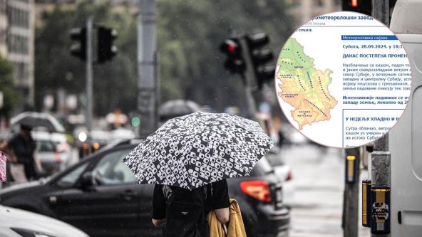 "Naoblačenje sa kišom, padom temperature i umerenim i jakim severozapadnim vetrom koje je zahvatilo sever Srbije, u večernjim satima proširiće se i na zapadnu i centralnu Srbiju, uslovljavajući i lokalnu pojavu pljuskova s grmljavinom, dok se na jugu i istoku zemlje padavine očekuju tek tokom noći ka nedelji", navodi se na sajtu RHMZ-a.