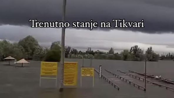 Kako se vidi na snimku koji je podelila Instagram stranica "backapalankadesavanja", vodostaj je dostigao toliki nivo da iz vode vire samo suncobrani i ulične svetiljke.