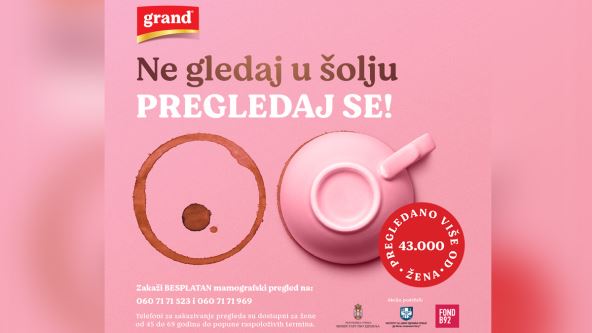 ,,Oktobar, kao Međunarodni mesec borbe protiv raka dojke, obeležava se u mnogim zemljama širom sveta, i ima za cilj da podigne svest o značaju prevencije ove bolesti i skrene pažnju na njenu visoku rasprostranjenost. Mi u Grand kafi već četiri godine u kontinuitetu radimo na širenju svesti o prevenciji ove bolesti i značaju rane dijagnostike. Do sada je u okviru akcije ,,Hajde da imamo vremena za pregled'' dijagnostiku u mobilnom mamografu obavilo više od 43.000 žena, a zajednički cilj svih nas koji smo deo ove kampanje jeste da podstaknemo žena da brinu o svom zdravlju. Ovi podaci, o broju pregledanih žena u mobilnom mamografu, na koje smo ponosni, potvrđuju da smo na dobrom putu da u tome uspemo“, kažu u Grand kafi.