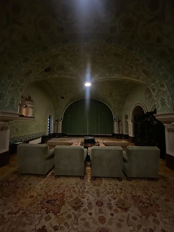 Luksuzna sala nalazi se u sklopu kompleksa kraljevskog dvora, na Dedinju, u delu koji je zapravo bio kraljev vinski podrum. Bioskopska sala smeštena je u podrum kraljevskog kompleksa na Dedinju koji je kralj Aleksandar koristio za odmor, razonodu, ali i poverljive razgovore, kakvi su se vodili u misterioznoj Sobi šapata.