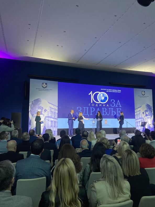 Direktorka Instituta prof. dr Verica Jovanović uručila je ministru zdravlja Zlatiboru Lončaru priznanje za podršku u radu Instituta, a istovremeno je priznanje za doprinos u unapređenju javnog zdravlja uručila i predsedniku države Aleksandru Vučiću, koje je preuzela njegova savetnica Verica Lazić.