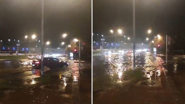 Ispod mosta Duga u Novom Sadu pukla je vodovodna cev, zbog čega je cela ulica ispod mosta poplavljena.