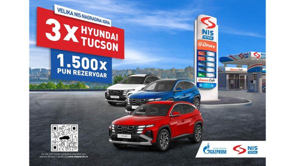 Na benzinskim stanicama kompanije NIS počinje Velika nagradna igra sa najvećim brojem nagrada do sada – tri Hyundai Tucson automobila i 1.500 punih rezervoara goriva.