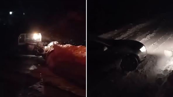 "Tara, put Mokra Gora-Mitrovac: Rendžeri izvlače zaglavljene turiste sa puta. Put je neprohodan od Vizitorskog centra", navodi se u opisu snimka.