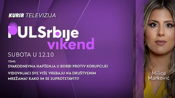 Gledajte „Puls Srbije vikend“ sa Milicom Marković danas u 12.10h na Kurir televiziji i saznajte najvažnije informacije o borbi protiv korupcije i sveprisutnim opasnostima na društvenim mrežama.