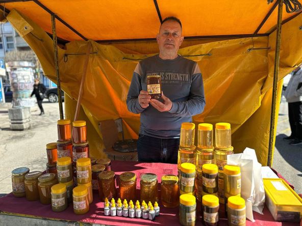 Prošla godina je za pčelare bila izuzetno teška, kakva će ova biti, to je teško pretpostaviti. Prinosi meda najviše zavise od vremenskih uslova i stanja pčelinjih zajednica. Ovih dana u centru grada na Moravi postavljen je osmomartovski bazar gde je na svojoj tezgi između ostalih med i ostale pčelinje proizvode izložio i Stojan Ječmenić.