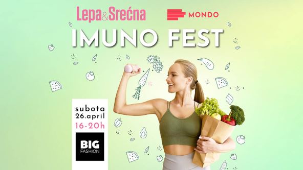 Ovog proleća, magazin Lepa&Srećna i tržni centar BIG FASHION već tradicionalno organizuju i pozivaju vas na najzdraviji događaj sezone – IMUNO FEST - koji se održava u subotu, 26. aprila, od 16 do 20 časova.