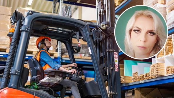 "Viljuškari su ključni za brz i efikasan način transporta i skladištenje robe... nije pravilo, ali ovaj posao je nekako rezervisan za muškarce", priča ona.