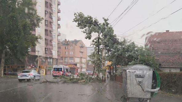 U Kragujevcu je jak pljusak uz olujni vetar. Jedno drvo je palo nasred puta i nije poznato da li ima povređenih.