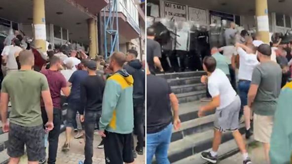 Nakon kraće rasprave okupljenih građana sa policijskim kordonima, došlo je do međusobnog guranja, a potom se više građana zaletelo ka pripadnicima policije. Pojedinci su, prema navodima očevidaca, policajce gađali flašama i kamenicama.