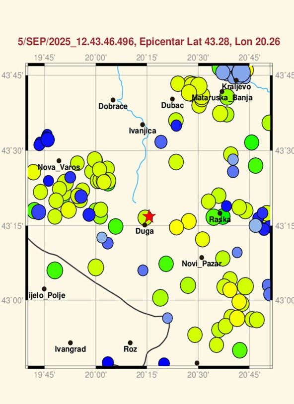 Potres je registrovan u regionu planine Golije. Na pola puta između Raške i Sjenice, tačnije kod sela Crčevo, magnitude 4.2 jedinica Rihterove skale.