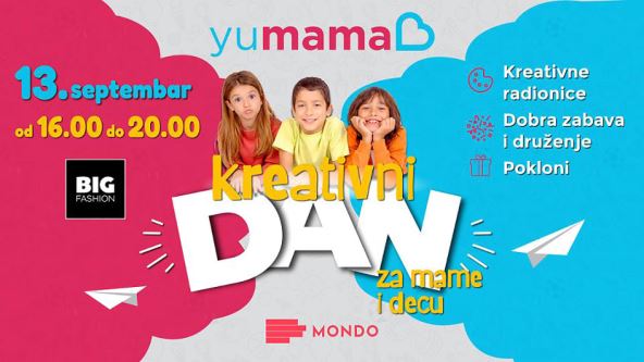 Pridružite se YuMama Kreativnom danu za mame i decu 13. septembra od 16 do 20 časova, u BIG FASHION šoping centru u Višnjičkoj 84. Pogledajte ceo program radionica!