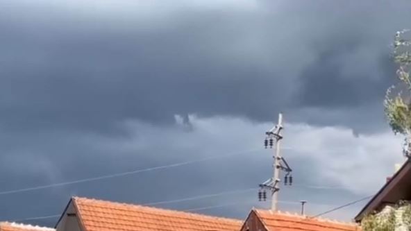 Na video snimku koju je podelila stranica 192.rs, nebo se potpuno zamračilo nad Nišom, a prema trenutnim podacima sajta "Vreme i radar", na samom obodu Niša primetne su padavine propraćene grmljavinom i gradom (ljubičasta boja).