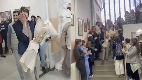 Snimak, podeljen na Instagram stranici "medicinskaks", pokazuje duplu proslavu za jednu profesorku iz Medicinske škole u Kruševcu, kojoj su učenici i kolege priredili iznenađenje povodom rođendana i odlaska u penziju.