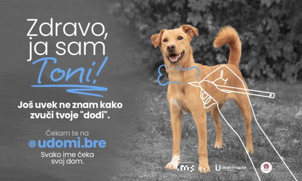 Toni je jedna od kuca o kojoj brine Udomi.bre ekipa, sa kojima je Direct Media, a uz podršku Led Mreže Srbije, pokrenula u oktobru CSR DION kampanju „Svako ime čeka svoj dom“. Cilj je bio da se, kroz inovativnu digitalnu out-of-home platformu DION, omogući da poruke o udomljavanju napuštenih pasa, o kojima brine @udomi.bre, budu prikazane na LED ekranima širom Srbije.