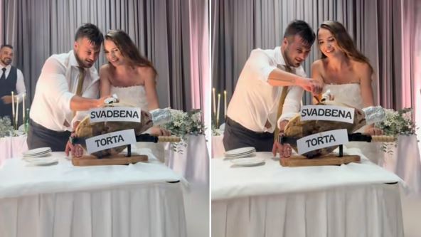 Jedan mladi bračni par postao je apsolutni hit na društvenim mrežama zbog svoje neobične svadbene torte. Oni su odlučili da odu korak dalje u nesvakidašnjoj proslavi i kada je došlo na red da seku svadbenu tortu, oni su dobili ogroman komad pršute.