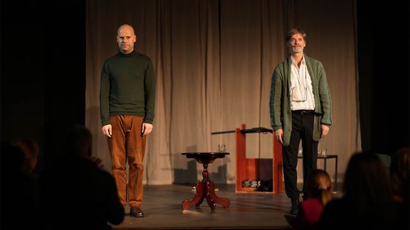 Obraćamo se ljubavnim rečima. Ali ko smo mi? Kome kažeš volim te? Na ivici mora i jednog udaljenog norveškog ostrva, rodila se drama Zagonetne varijacije Erika Emanuela Šmita, koja istražuje kako se ljubav menja, kako istina boli i da li ikada prestajemo da volimo. Nežan i oštar istovremeno, ovaj komad postavlja pitanje možemo li voleti i biti potpuno iskreni, kroz intiman dijalog dvojice likova koje tumače maestralni Janko Cekić i Goran Šušljik.