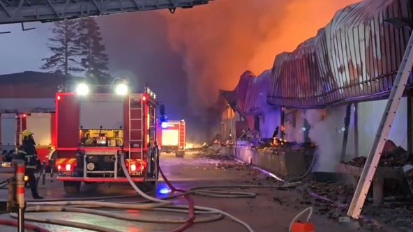 Vatrena stihija u industrijskoj zoni ne jenjava. Prema najnovijim informacijama s terena i poslednjem video snimku, požar je zahvatio novi magacin, u kojem su se nalazili materijali, štofovi za nameštaj, izuzetno lako zapaljivi, zbog čega se vatra naglo rasplamsala. Požar se sada širi prema zadnjem magacinu, u pravcu gradske toplane, što dodatno podiže nivo opasnosti. Plamen se širi velikom brzinom, a gust dim i visoki plameni jezici otežavaju intervenciju i vidljivost.