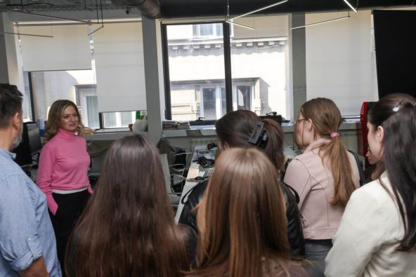 Ivan Čorbić, šef štampanog izdanja Kurira, naše goste proveo je kroz redakciju upoznavši ih sa svakom rubrikom i objasnivši kako nastaju najuticajnije novine Balkana i zašto je naš sajt najbolji u Srbiji.