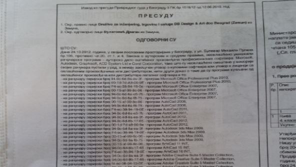 Presuda je doneta jer je firma kojoj je presuđeno neovlašćeno umnožila i koristila računarske programe proizvođača softvera: Microsoft, Autodesk, Graphisoft, ACD System LTD i Corel Corporation.