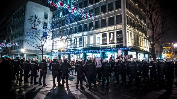 Specijalne policijske snage, u opremi za razbijanje demonstracija, su negde oko 18 časova, za kad je bio najavljen početak izložbe, okružile su grupu i upozorile da njihov skup nije dozvoljen. Policija ih je guranjem primorala da se povuku ka Obilićevom vencu, odakle su još neko vreme uzvikivali svoje parole.