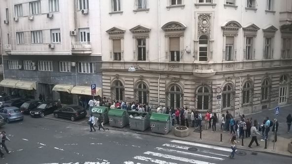 Slična scena je i ispred druge knjižare Zavoda u Kosovskoj ulici, gde se, kažu okupljeni, još duže čeka.