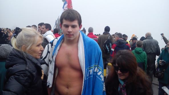 Pobednik Bogojavljenskog plivanja za Časni krst na reci Đetinji u Užicu je vaterpolista iz Bele Crkve Neven Selaković (24).