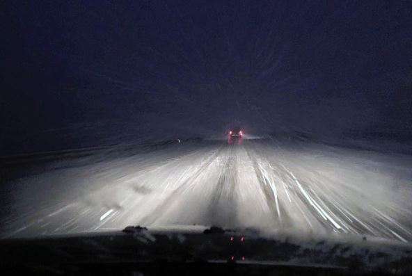 Veliki broj šlepera, cisterni, autobusa i putničkih automobila nalazi se u koloni koja je zbog jake vejavice blokirana na deonici puta od centra Iriga prema Iriškom vencu na Fruškoj gori.