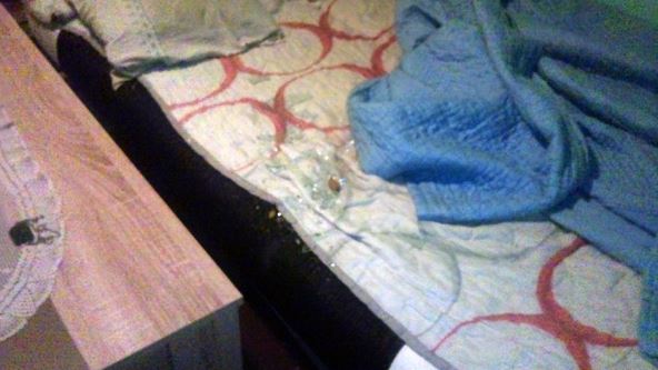 Jedan od napadnutih muškaraca za MONDO kaže da se sve dogodilo oko jedan sat iza ponoći, da im je no bacio ciglu kroz prozor spavaće sobe, koja je razbila dva stakla. Staklo se raspršilo po celoj sobi, kao i po krevetu.