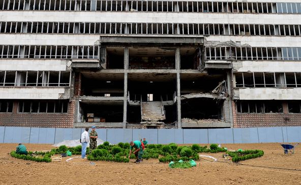 Ta zgrada je oštećena u NATO bombardovanju 1999. godine.