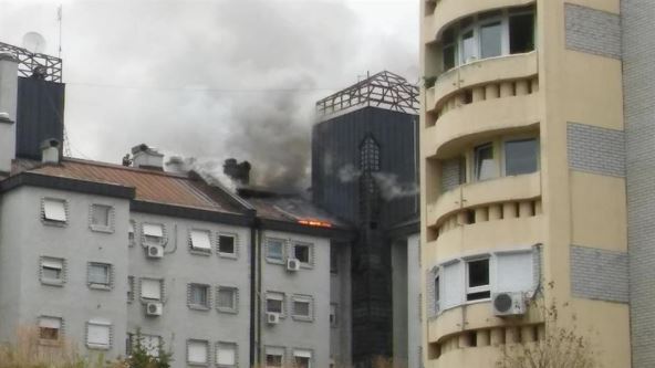 On je dodao da su vatrogasci imali problema da priđu vatri, ali je "sve uspešno rešeno", kao i da je vatra zahvatila oko 100 kvadrata zajedničkog prostora na tavanu.