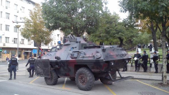 Grupice policajaca u opremi za razbijanje demonstracija raspoređene su bile i oko Palate federacije.