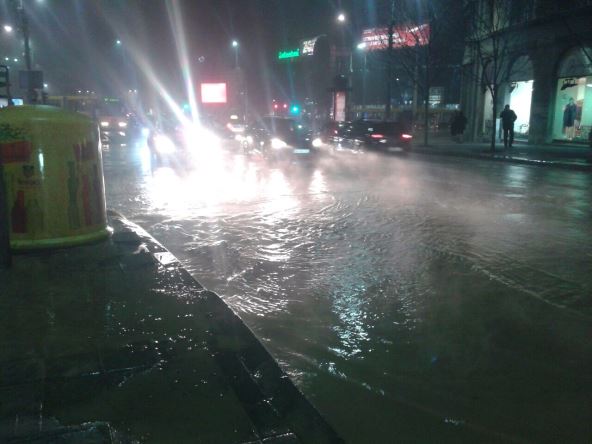 Bez "pecaroških" čizama nije se večeras moglo jednom od ulica najužeg centra Beograda usled pucanja vodovodne cevi, javlja reporter sajta MONDO.