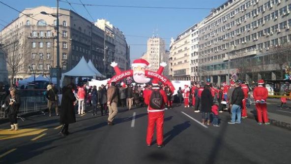 Bela staza Deda Mraza, kojom su trčali i šetali Deda Mrazevi i Baba Mrazice je bila Ulica kralja Milana, a centralno mesto manifestacije plato kod Terazijske česme.