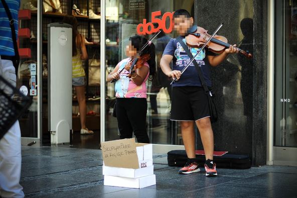 Dečak i devojčica već par godina sviraju u centru Beograda, a ovog puta na kartonskoj kutiji napisali su da im je potrebna pomoć da bi kupili knjige.
