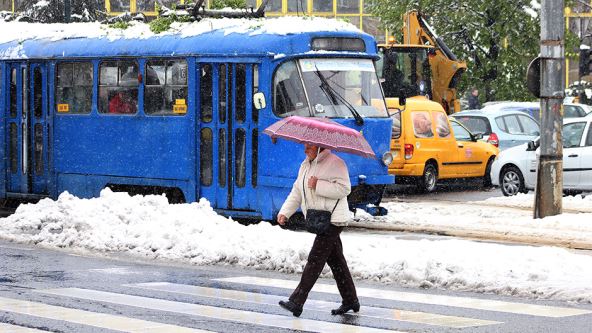 Sneg je sinoć počeo da pada u Sarajevu, pa je zbog toga jutros nastao kolaps u saobraćaju. U pojedinim delovima grada došlo je i do kvarova na semaforima.