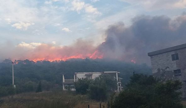 Vatrogasci se bore da sačuvaju dve kuće od plamena koji nadire. U pomoć je pozvano pojačanje iz Ulcinja i Budve. U gašenju požara učestvuju i pripadnici monarice VCG.