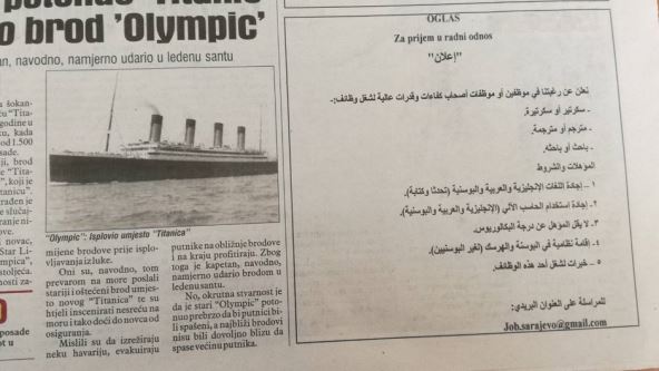A kako je medijima svaki oglas dobrodošao, nije problem ni objaviti ga, iako je na, za većinu građana ove zemlje, nepoznatom jeziku.