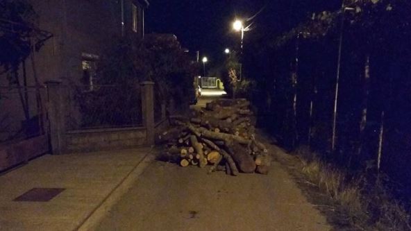 U ulici Đura Daničića, dvadesetak metara od magistralnog puta Podgorica - Nikšić, kod marketa Vuk, istovarena drva već nedelju dana blokiraju ulicu i meštane.