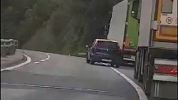 Na snimku se može videti kako je nestrpljivi vozač pretekao šleper preko pune linije i to na mostu gde je preticanje strogo zabranjeno.