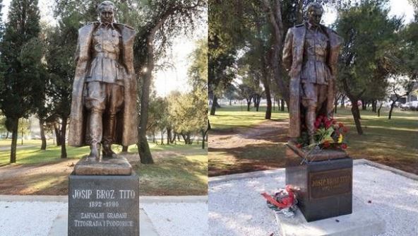 Spomenik Josipu Brozu Titu svečano je otkriven juče, a dan ranije postavljen je u parku na Bulevaru Svetog Petra Cetinjskog.