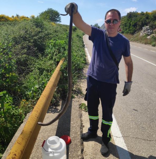 Srećom, razloga za strah nije bilo uprkos kapitalnoj dužini ovog gmizavca jer je bila reč o za ljude bezopasnom smuku.