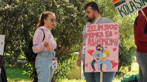 Organizatori su nosili transparente sa natpisima: "Ozakonimo ljubav", "Sterilizacija je nečovečna", "Ko nas kamenom, mi njega Prajdom"…