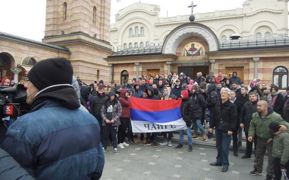 Okupljeni su skandirali "Kosovo, Kosovo", "Na damo svetinje", "Milo, Šiptare, ne damo ti svetinje"...