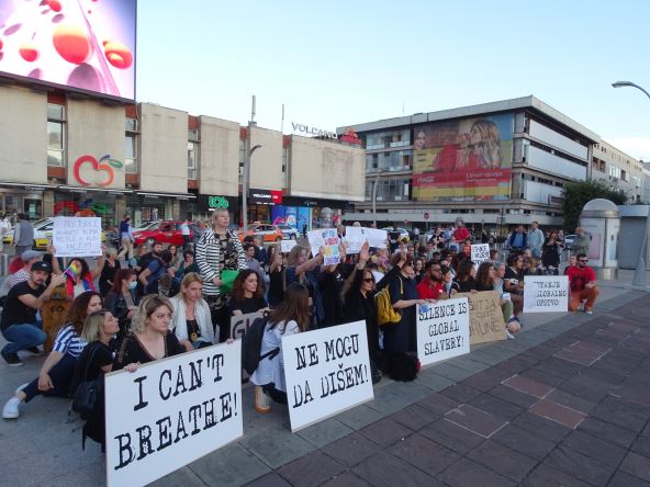 Simboličnim performansom podizanja ruku u vis, kao i klečanjem, građani su odali počast ubijenom Afroamerikancu, poručivši da je globalno lokalno te da se rasizam širom sveta pojavljuje u raznim oblicima i da se protiv toga svi moraju boriti.