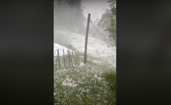 Jedan od meštana objavio je videozapis na Facebooku na kojem se vidi da u Međeđi kod Višegrada duva snažan vetar i da je za veoma kratko vreme pala velika količina kiše i grada zbog kojeg se sve zabelelo.