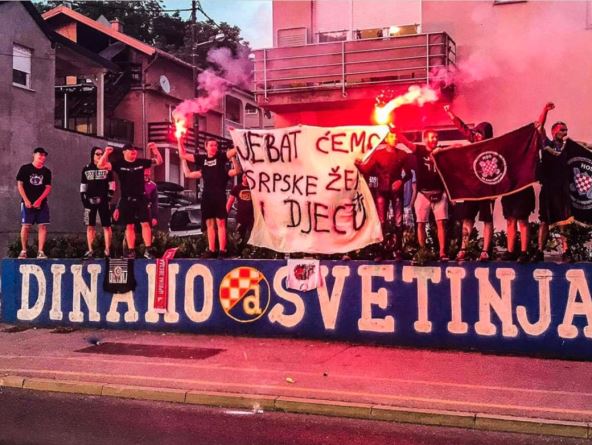 Prema fotografijama objavljenim na društvenim mrežama, reč je o nekoliko Dinamovih navijača koji su u Kustošijanskoj ulici u Zagrebu zakačili natpis "J..at ćemo srpske žene i decu", uz slovo "U".