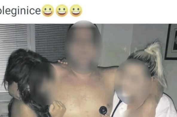 Tada je osuđenik Dj.P. koji kaznu izdržava u toj zdravstvenoj ustanovi, na Facebooku objavio fotografiju na kojoj je, u bolničkoj sobi, s jednom obnaženom i drugom đelimično obnaženom ženom, obučenom u uniformu zdravstvenog radnika.