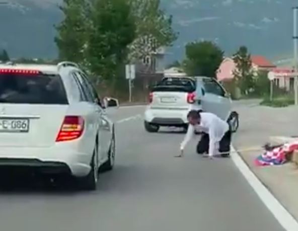 Tada je čovek koji je virio kroz otvor na krovu automobila ispao na put, prenosi Bljesak.info.