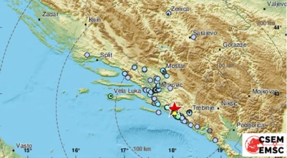 Epicentar potresa bio je 73 kilometara južno-jugoistočno od Mostara i 11 kilometara severozapadno od Dubrovnika.